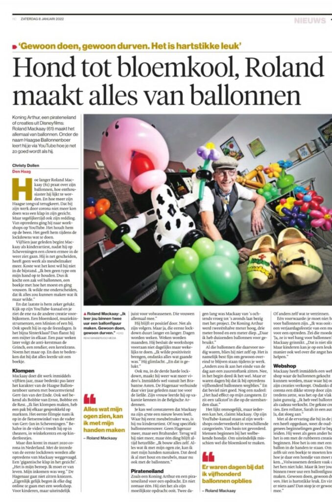 Voor het interview kun je kijken op : //www.ad.nl/den-haag/een-minion-bloemkool-of-koning-arthur-roland-61-maakt-alles-van-ballonnen-gewoon-durven~a3a9d4c3/