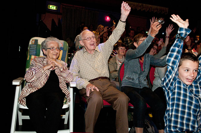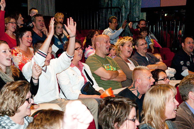 Fotografie door Dick de jager die als geen ander weet hoe je kan uitbeelden wat een theater-show kan doen met het publiek.